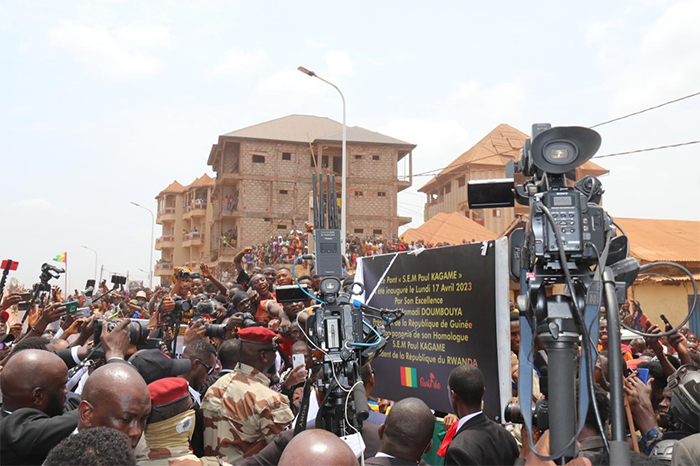 几内亚过渡政府总统马马迪·敦布亚与卢旺达总统保罗·卡加梅共同为立交桥的开通剪彩