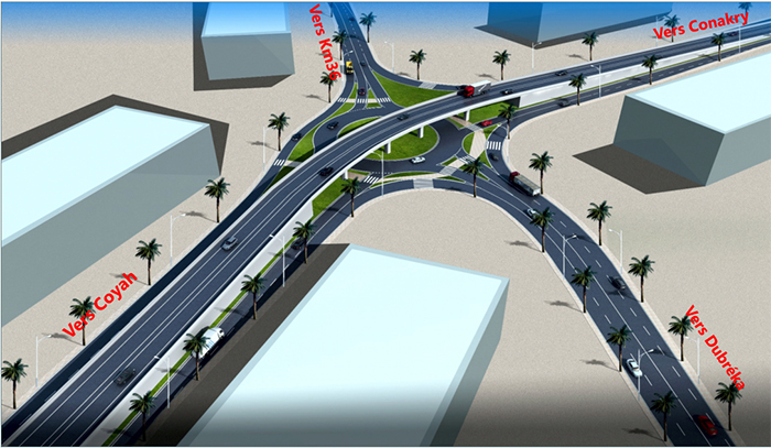 KAGBELEN 立交桥为上跨式立交桥,全长504.59米。该桥的竣工通车对几内亚经济的高速发展具有极大的战略意义。