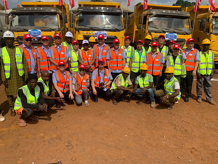 讲话结束后,工程部部长、欧盟代表、联合国代表在大家的簇拥下身穿CBITEC反光背心,头戴CBITEC安全帽前往奠基处剪彩并参加奠基仪式,共同祝愿项目施工顺利。