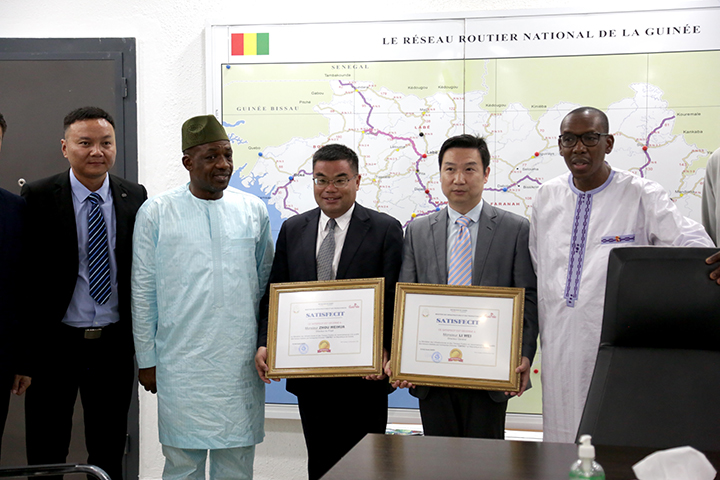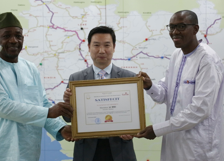 几内亚科纳克里市政道路项目在经历了疫情肆虐、政权更迭、管网迁改、雨季干扰等不利因素影响,分公司面对各种挑战、克服无数困难,保质保量如期交付了全部道路。多年的努力获得了业主的肯定,为了感谢蚌埠国际为几内亚基础建设和经济发展做出的卓越贡献,几内亚基建与工程部部长为蚌埠国际几内亚分公司颁发了项目满意奖,为几内亚分公司经理李伟和项目经理周卫华颁发了先进个人奖,通过他们向蚌埠国际全员表达几内亚政府与人民感激之情和对未来的殷殷期盼。