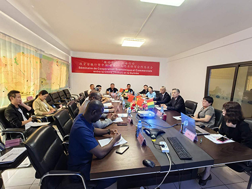 3月26日上午10点,投资安徽行暨中国(安徽)几内亚经贸合作恳谈会在我几内亚分公司三楼会议室举行。安徽省商务厅副厅长杨本清一行同几内亚多家优秀中方企业及当地企业就推介安徽省投资环境和政策进行了经贸合作恳谈。到访嘉宾就双向投资方面,安徽与几内亚积极融入共建“一带一路”和深化经贸合作以及基础设施建设合作方面交换了意见,并且考察团一一解答了企业代表所关切的问题。